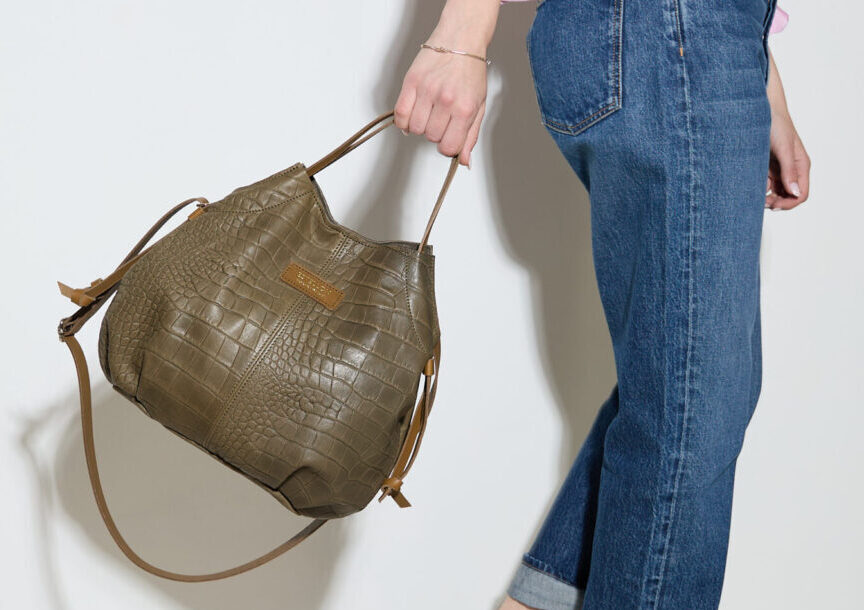 Volume boule M en cuir d’agneau lavé, embossage caïman.
